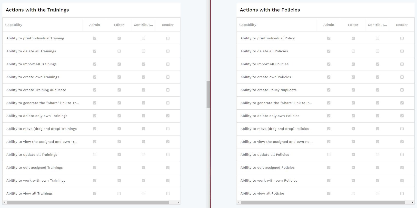 2. Yes to uniform section permissions! We've made permission settings more consistent and similar across all three sections of the platform (systems, policies, and training).